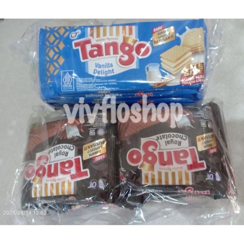 Wafer Tango kemasan renceng isi 10 pcs @ 15 gram. Varian : Cokkat & Vanila. Sudah tidak PROMo extra ya!!