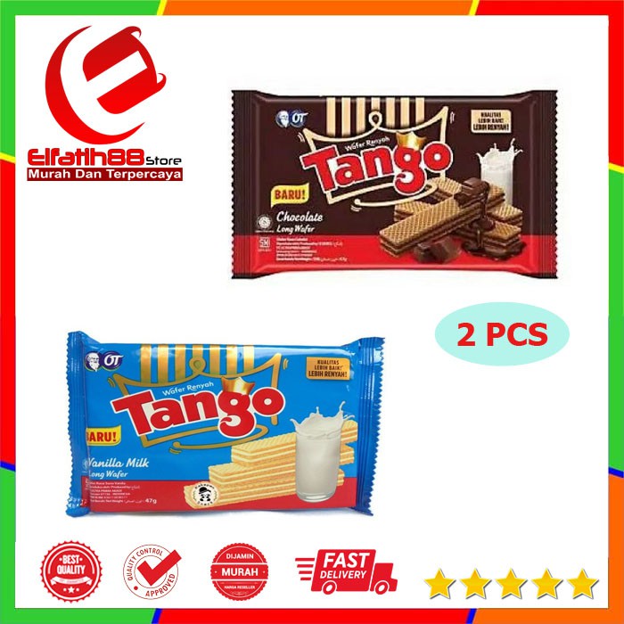 Wafer Tango Vanilla dan Cokelat - 47gr merupakan wafer yang terbuat dari resep ahli dengan mengkombinasikan chocolate cream premium dan susu dalam setiap lapisan wafer krispi, sehingga menghasilkan rasa yang gurih & lezat di setiap gigitannya. Cocok untuk cemilan dirumah maupun dikantor.