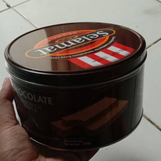 Wafer selamat rasa coklat kemasan kaleng berat 200gr