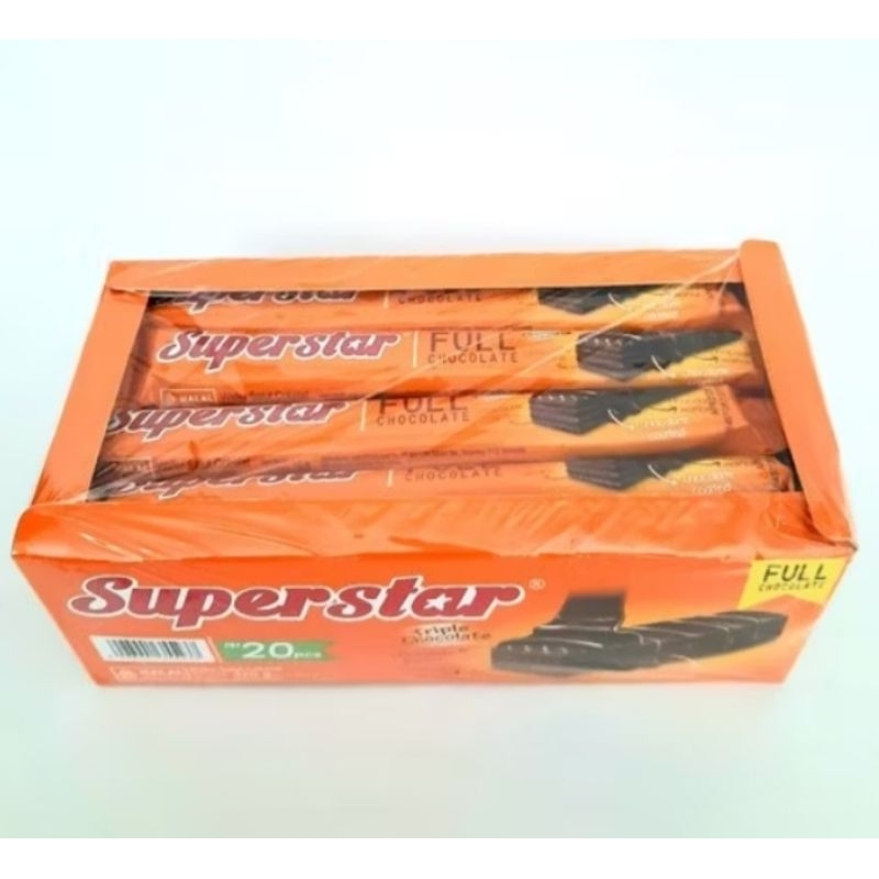 wafer superstar triple chocolate 1 box, berat @16 gr/pcs. 1 box isi 20 pcs. Expired aman.