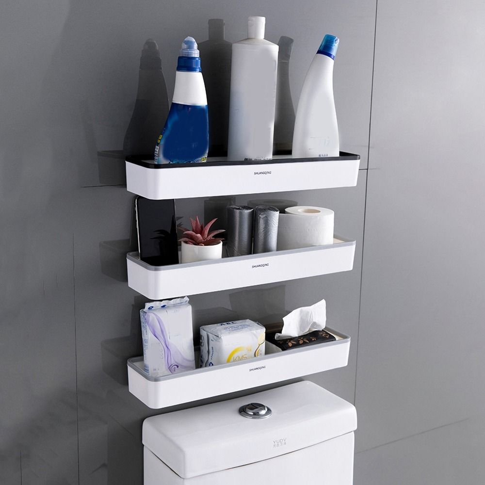 Wall Hanging Toilet Rack Shelf Plastic Bathroom Storage Organizer for Home