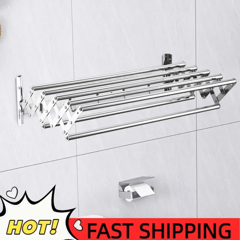 Wall Mounted Clothing Hanger 7 Rods 5 Hooks Retractable Collapsible Wall Drying Rack Rustproof Laundry Hanger for Bathroom/Tower