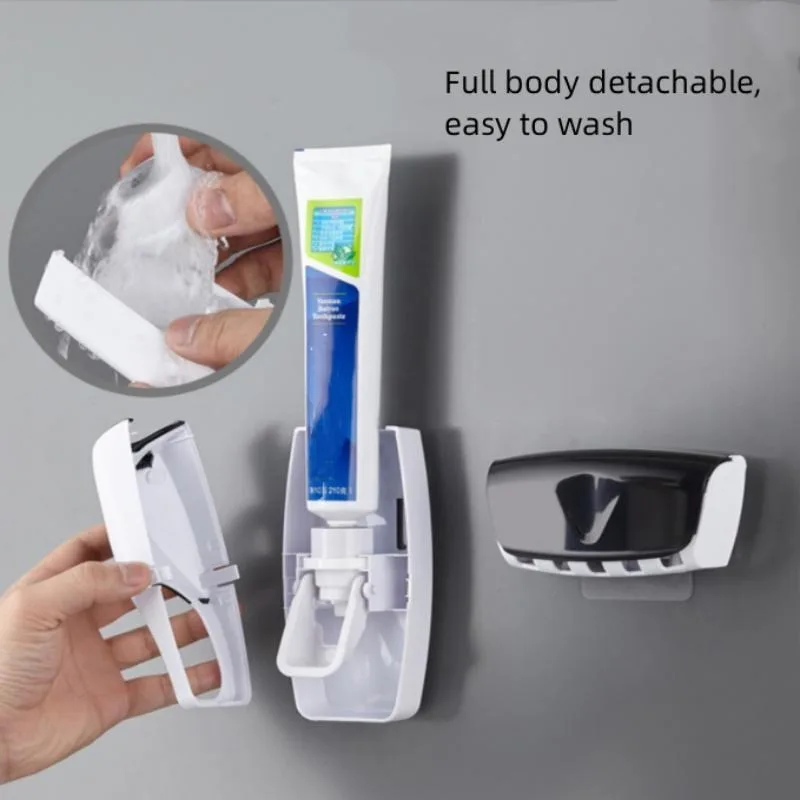 Wall-Mounted Toothbrush & Toothpaste Holder Set With Automatic Dispenser And Cup