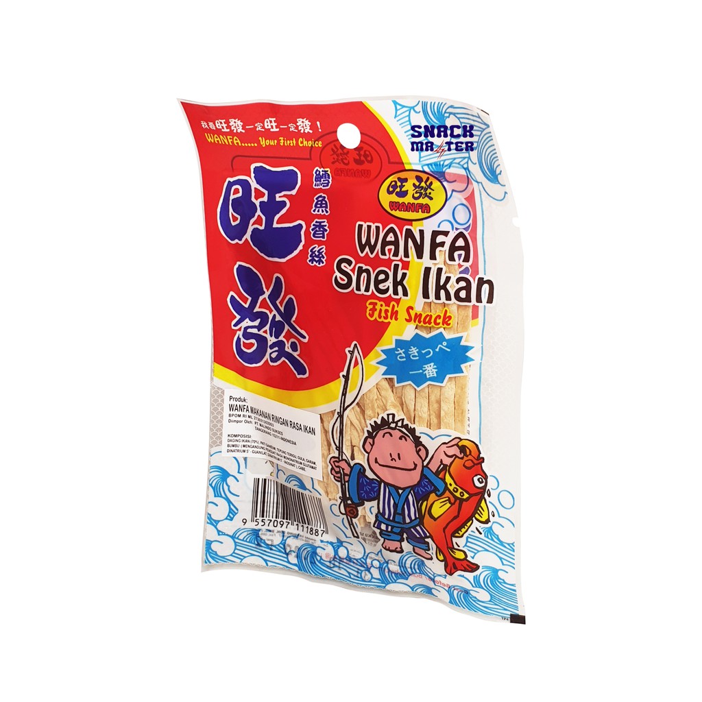 Snek ikan wanfa dihasilkan hanya dengan daging ikan yang paling segar dibawah proses yang bersih dan ketat. mengandung kalsium, protein, karbohidrat dan mineral yang tinggi. Snek yg enak dan kaya dengan nutrisi bagi tubuh. Cocok utk dijadikan cemilan maupun sbg lauk makanan.