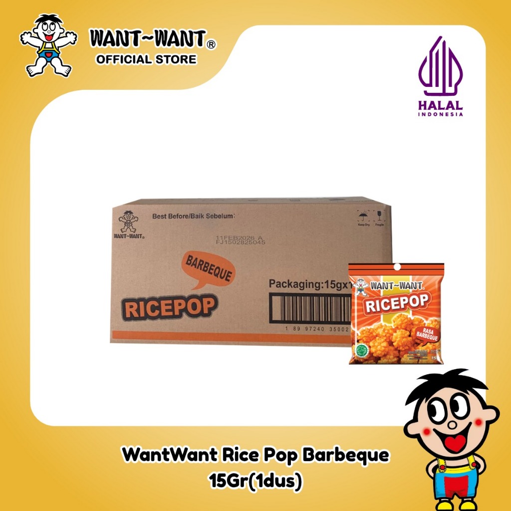 Want Want Snack Beras Rice Pop Rasa Barbeque 15Gr x 60 pcs ( 1 dus ) | Rice Crackers