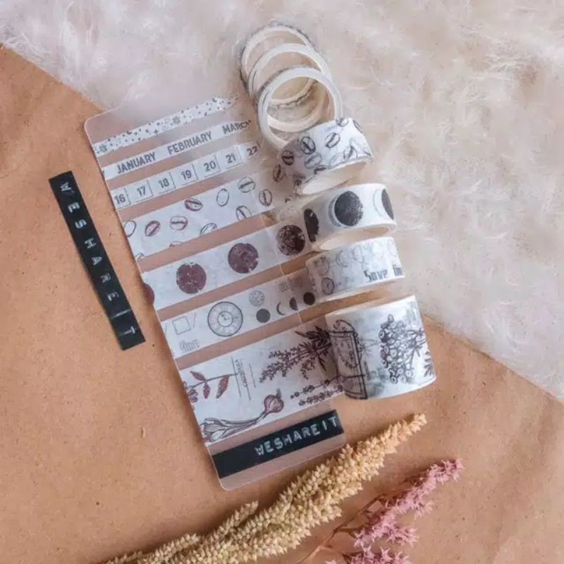 Terdiri dari 7 jenis washi tapes yang bisa dipilih secara random