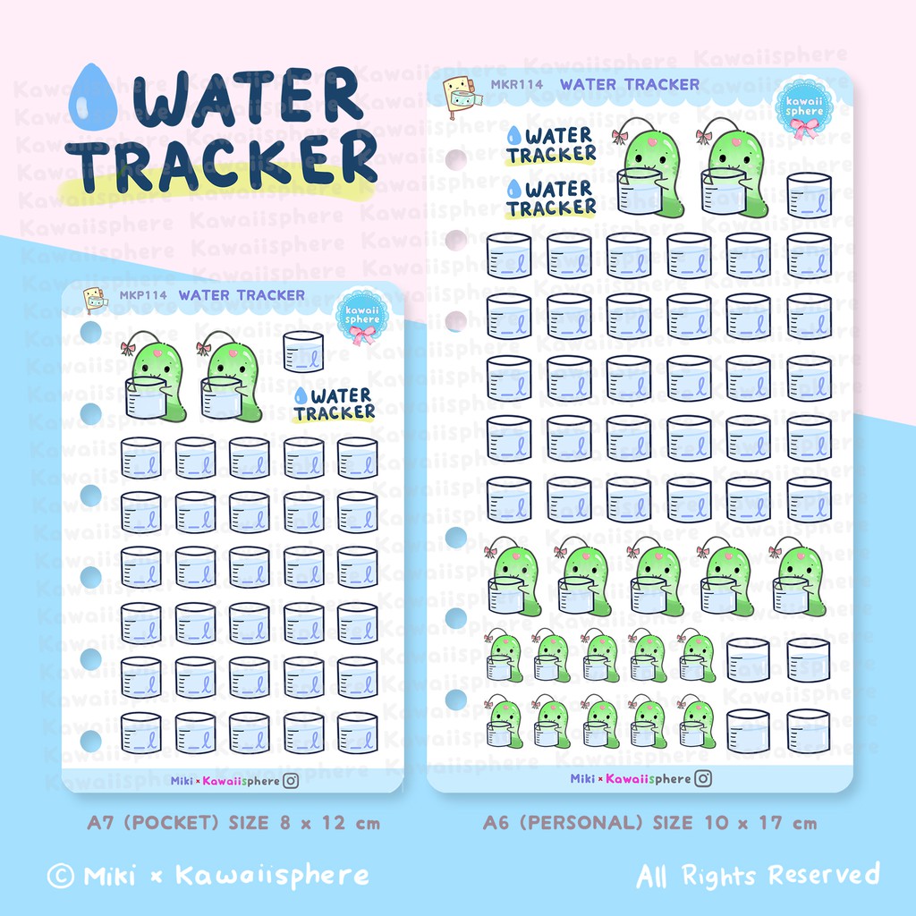 Water Tracker | A6 / A7 Ring Planner Refill Sticker Kawaiisphere