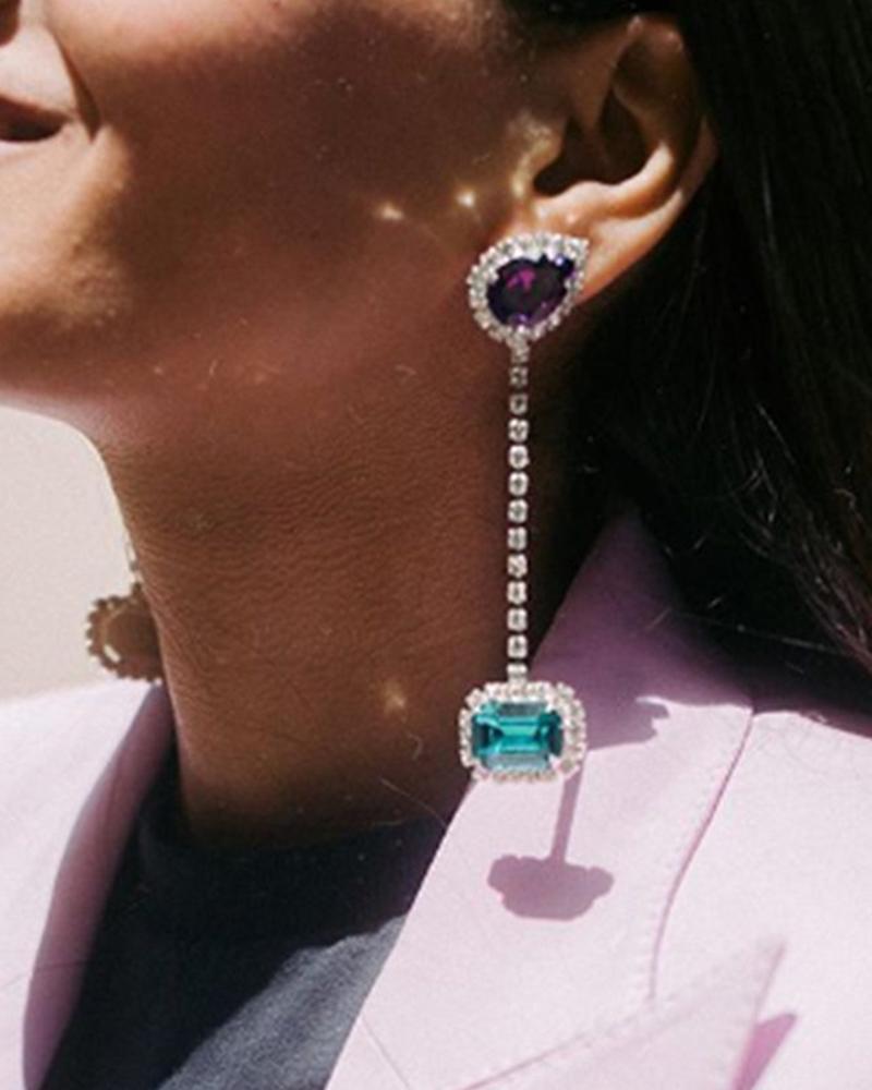Waterdrop & Square Shaped Drop Earrings, Silver