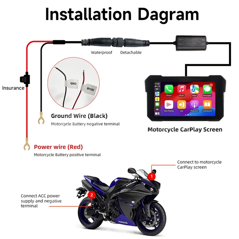 Waterproof 5" Motorcycle Portable Navigation Display Screen Wireless Carplay Android Auto Multimedia Player