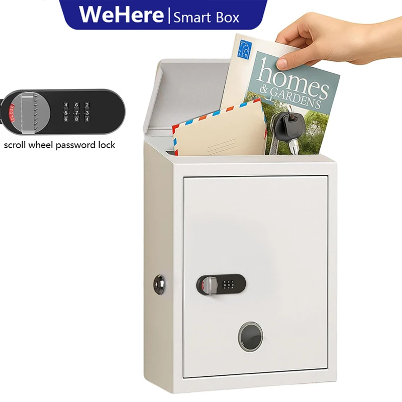 WeHere Wall-Mount Mailbox,outdoor Waterproof Galvanized Steel Rust-Proof Mailboxes with Combination&Key Unlock,Key Drop Box