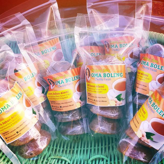 Wedang jahe Oma Boleng terbuat dari bahan alami Jahe Emprit, gula Jawa, tebu dan kayu manis.