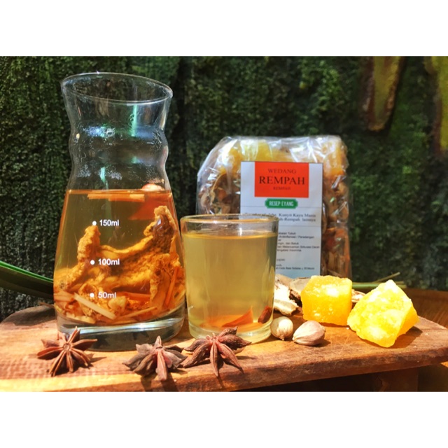 Spesial Rempah (Jahe, Kunyit,Temulawak, Sereh dan Rempah2 Lainnya) yang penuh akan manfaat tiap bahannya dikeringkan dan dikemas dalam satu racikan.