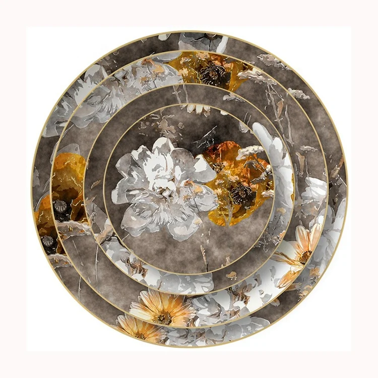 Wedding Table Decoration Tableware Yellow Oil Painting Retro Design Ceramic Set Dinner Set