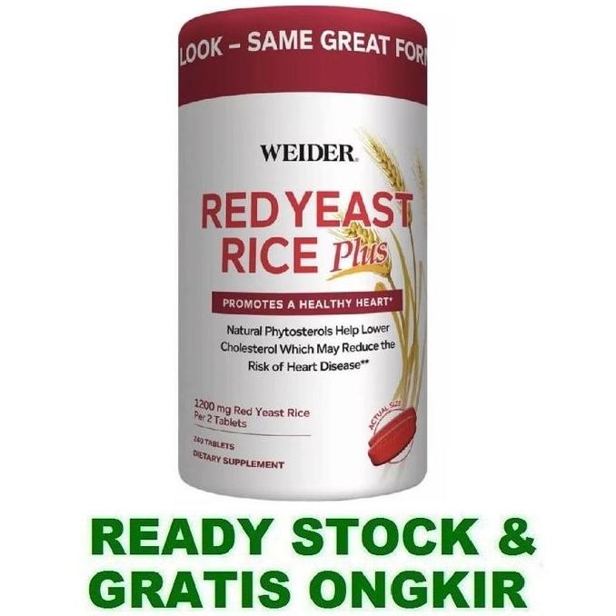 Harap Tanya kan Stock terlebih dahulu ya kak, sebelum Check out!! Weider Red Yeast Rice Plus 240 Tablets Heart Health Weider Red Yeast Rice Plus is intended to help maintain cholesterol already within the normal range. A diet that is low in cholesterol-rich foods and saturated fat should be your first step. As a company founded in fitness, Weider also recommends moderate exercise as well. In conjunction with these two steps a dietary supplement like Weider Red Yeast Rice Plus is the perfect addition to support your heart healthy goals! Diets low in saturated fat and cholesterol are diets that container 10% or less calories from saturated fat and total fat intake between 20% to 35% of calories. Recommended daily cholesterol intake is 300 mg or less. Ingredients Red Yeast Rice (Monascus purpureus) is a unique, botanical ingredient traditionally used in the Chinese diet for centuries. The first recorded use of red yeast rice appears during the Tang Dynasty. It is produced by fermenting red yeast with white rice. Since this is a botanical ingredient, produced in nature, some color variation is normal from batch to batch. This color change is not indicative of the potency or quality of the product. Each serving of Weider Red Yeast Rice Plus supplies 1200 mg of red yeast rice for a daily intake of 2400 mg.