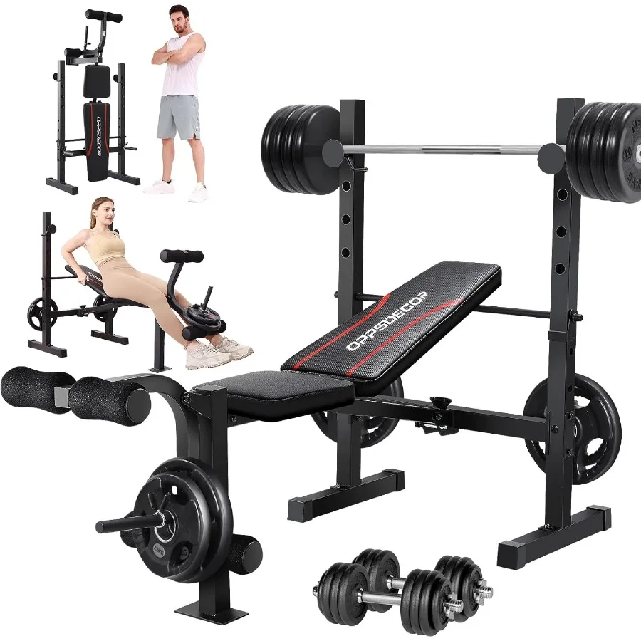 Weight Bench Set MultiFunction Adjustable Bench Press with Squat Rack Leg Extension and Leg Curl Workout Bench Foldable Workout