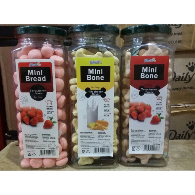 Weles mini bone&mini bread biscuit for dog Untuk pilih bentuk biscuit mohon hubungi saya,kalau tidak akan dikirim secara acak. Mohon cek stok sebelum pesan