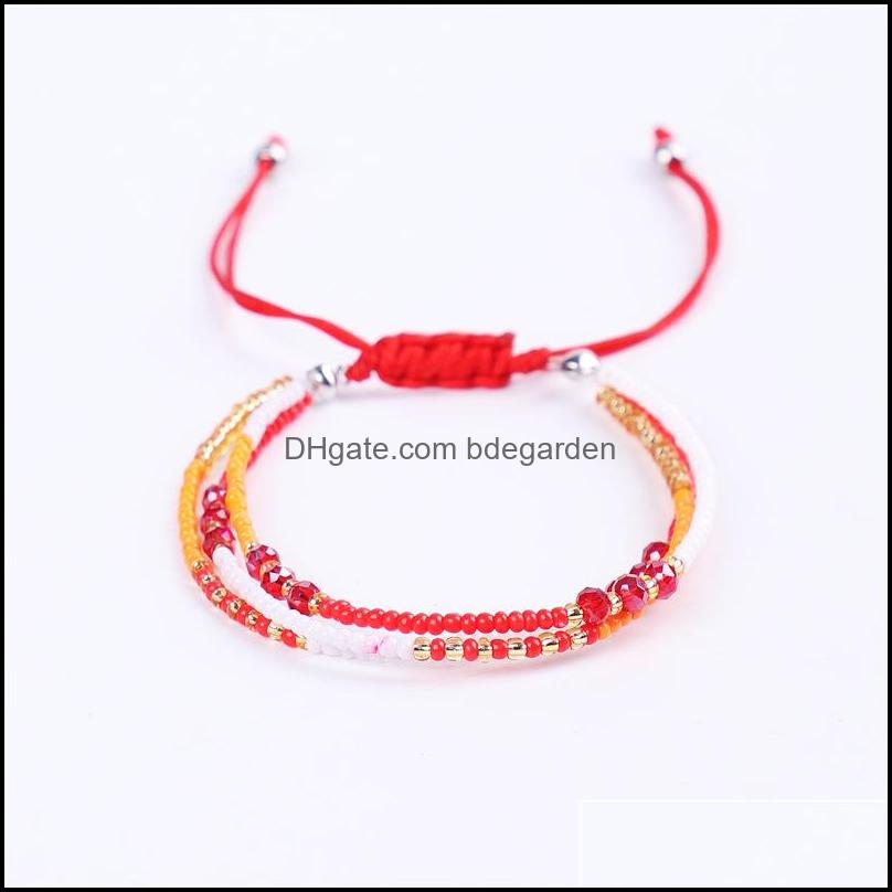 Charm Bracelets Jewelry Fashion-Layer Colorf Beads For Women New Fashion Weaving Adjustable Dhjzs