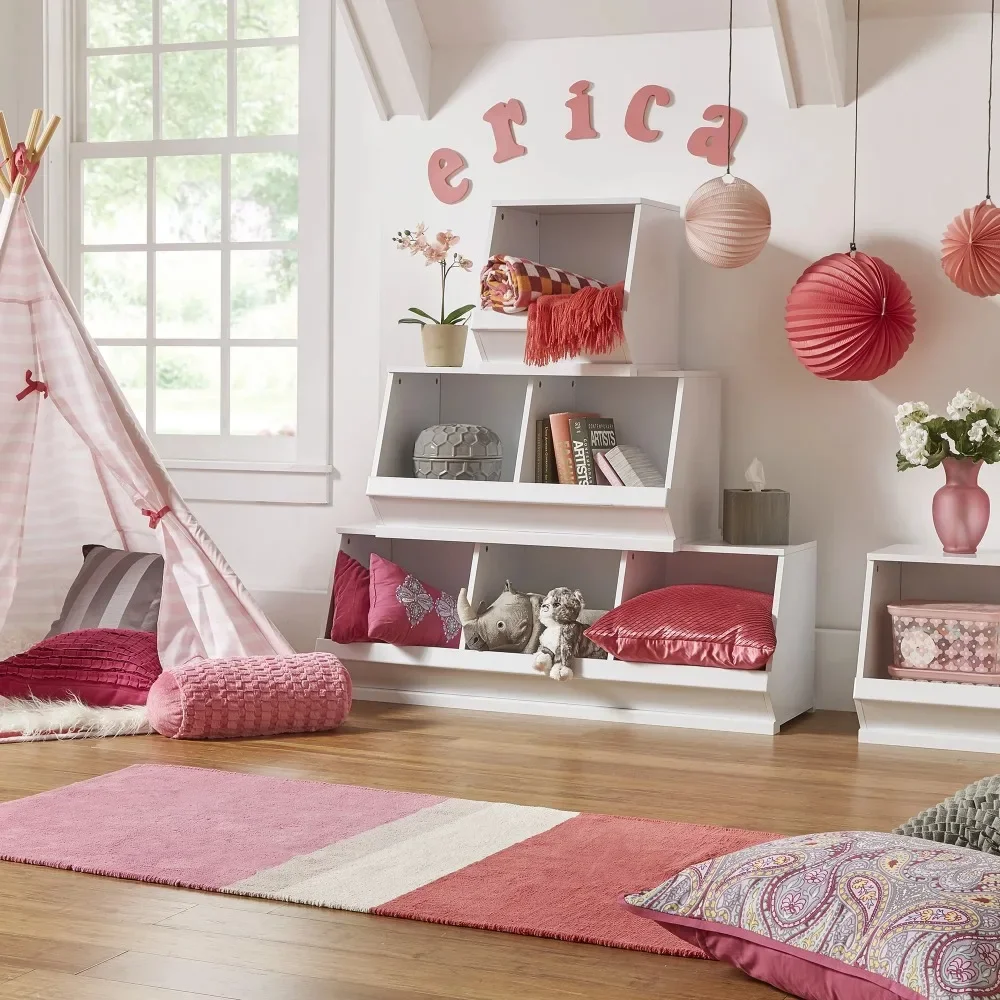 Weston Домашний Детский Штабелируемый деревянный и пластиковый куб для хранения, белый, один куб