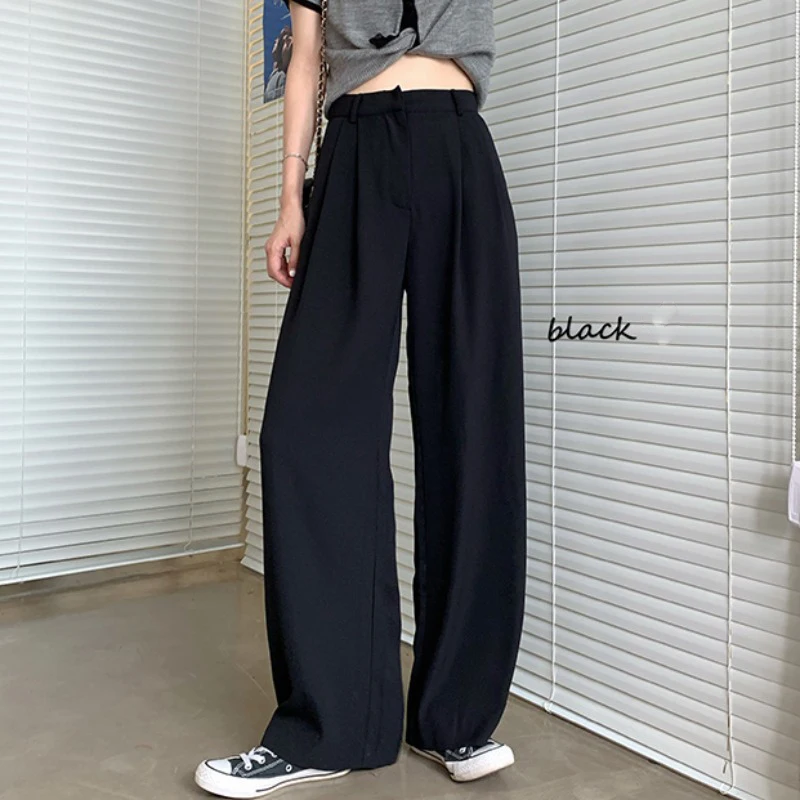 Whcw Cgdsr 2020 однотонные зимние ботинки для офиса в Корейском стиле; Брюки для женщин свободный костюм, сезон осень, высокая талия, широкие брюки ...