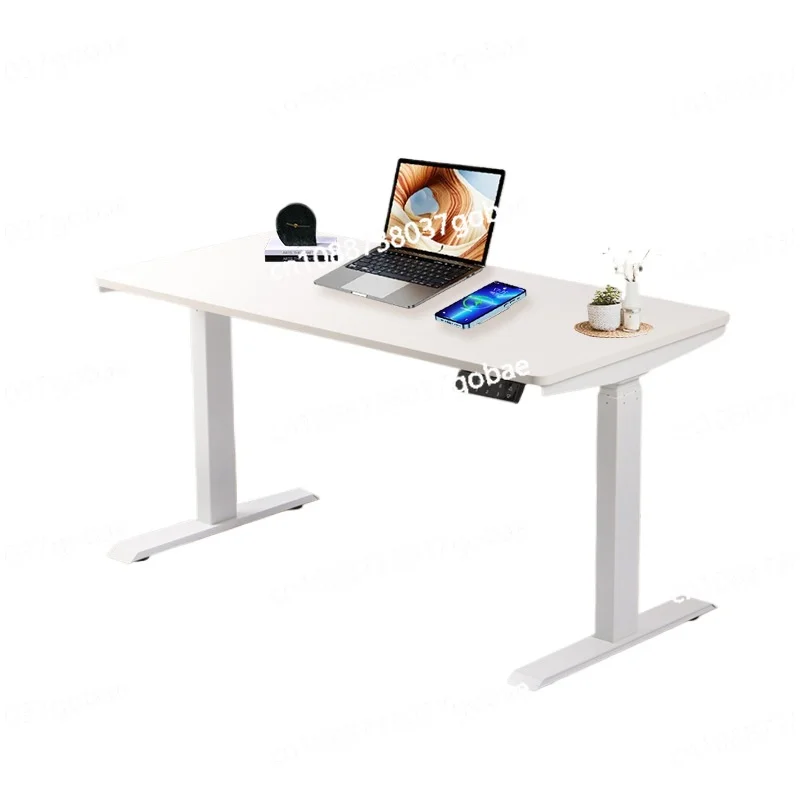 White Electric Lifting Table Home Computer Office Learning Desk With Lift Rack Height Adjustable Workbench For Study Office