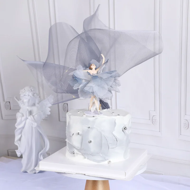 White Pink Ballet Decoration Hook Ribbon Happy Birthday Ballerina Cake Topper Wedding Bride for Party Supplies Baking Love Gifts