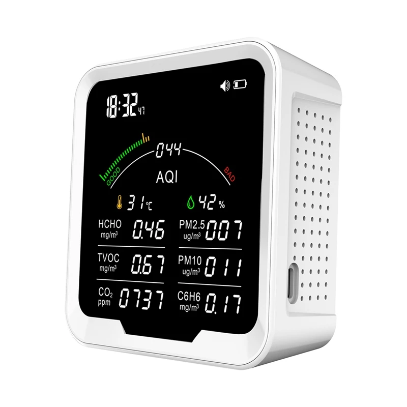 Wi-Fi Многофункциональный детектор качества воздуха с будильником и будильником PM2.5,PM10,HCHO,C6H6,CO2
