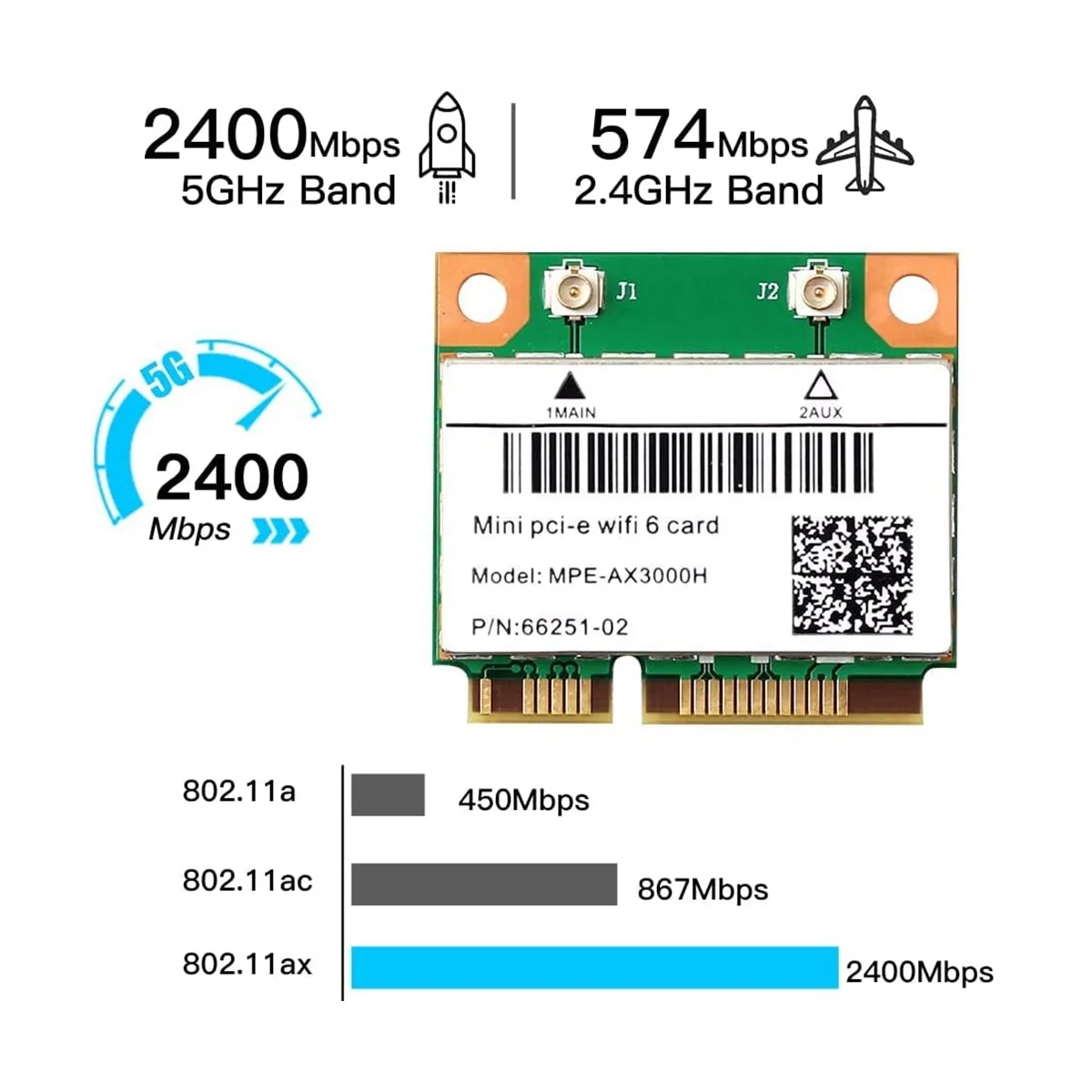 Wi-Fi 6 MPE-AX3000H 2974Mbps Беспроводная половинная мини PCI-E WiFi карта Bluetooth 5,0 двухдиапазонный 2,4G/5G сетевая карта адаптер