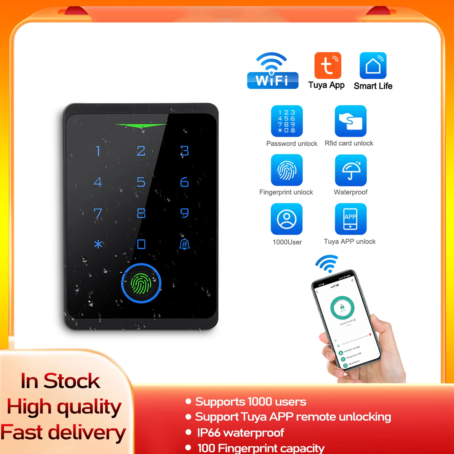 WiFi Tuya Fingerprint Access Controller RFID Keypad Outdoor Waterproof Smart Door Lock Reader Touch Backlight