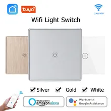 Wifi Smart Wall Touch Light Switch EU 1 Gang Glass Panel APP Voice Remote Control Work with Google Home and Alexa