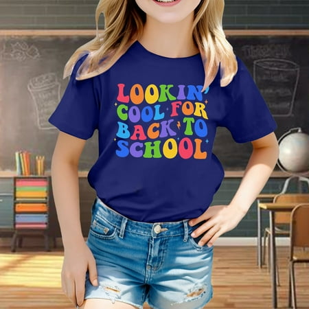 Hbdhejl Toddler Boys Girls Shirts Kid Back To School Season Graphic Print Round Neck Short Sleeve Tee Summer Casual T Shirt 4-5 Years