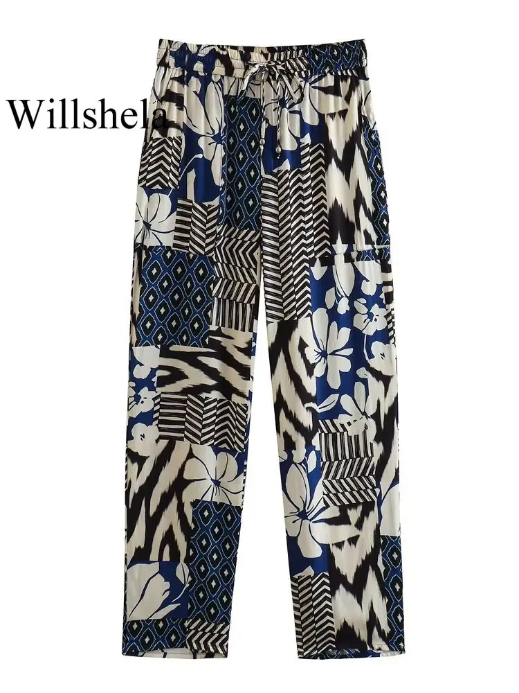 Willshela женские модные брюки с принтом и завязками винтажные длинные женские прямые брюки с высокой талией