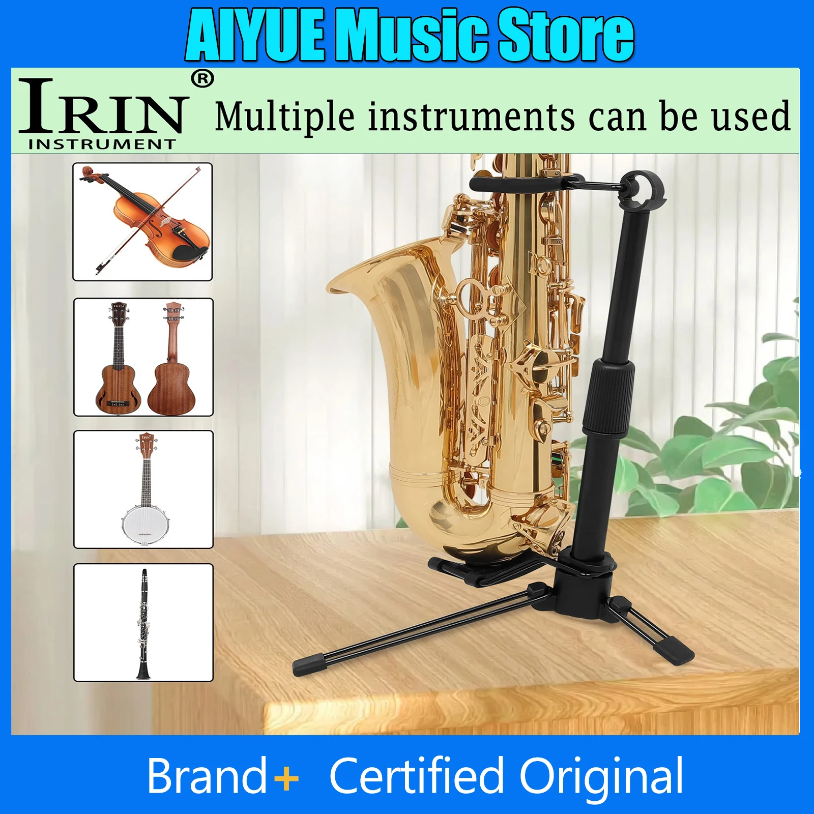 Wind Instrument Stand Foldable Portable Digital Adjustable Gathered Floor Stand Universal For Ukulele /Violin /Banjo / Saxophone