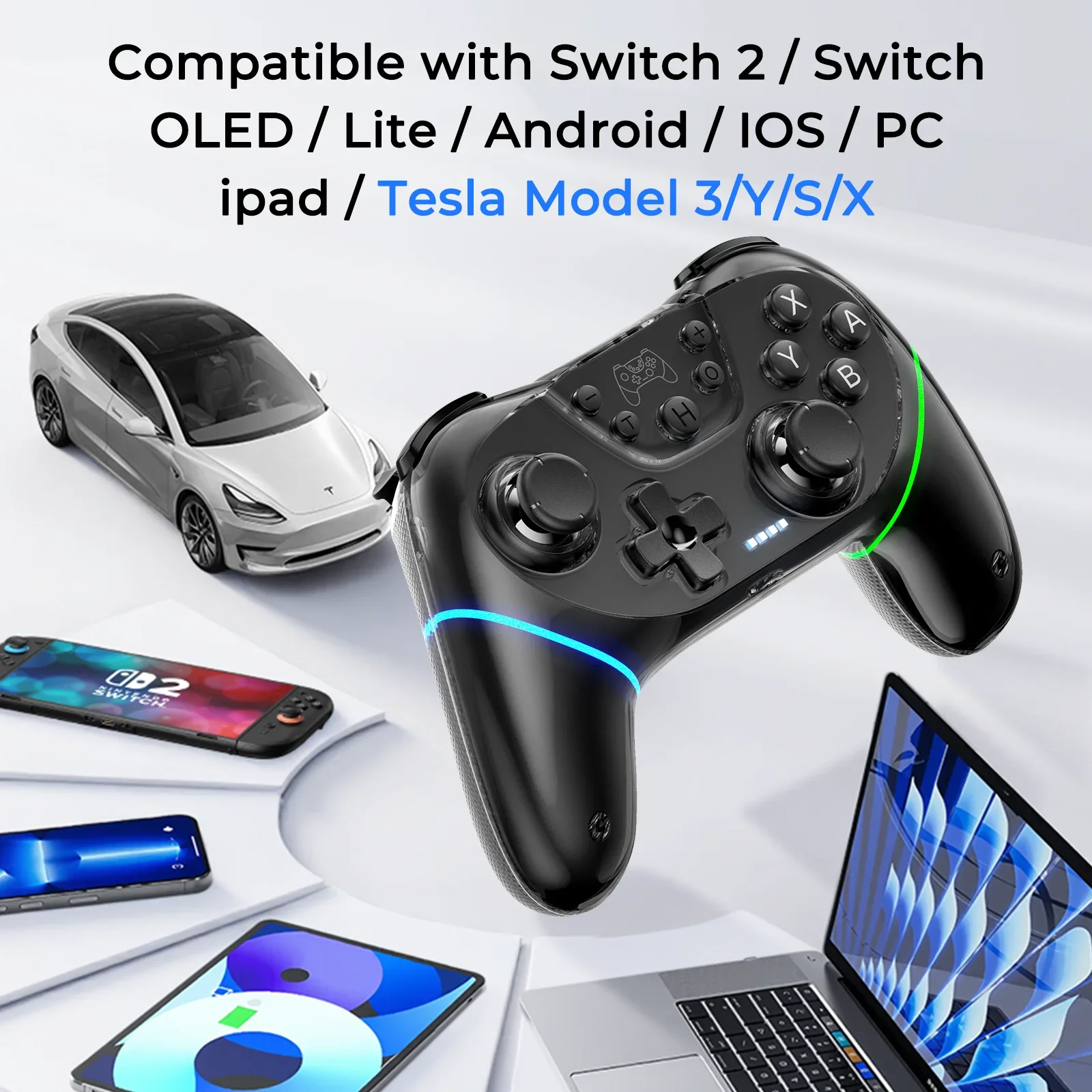 Wireless Gamepad Bluetooth Gaming Controller Compatible Switch 2/OLED/Lite/Android/Tesla Model 3/IOS/PC/ipad Hall Effect