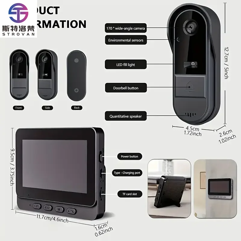 Wireless Smart Home HD Wireless Video Doorbell Plug and Play Security with Two Way Audio Waterproof Design