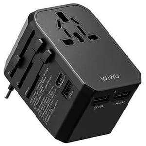 WIWU 4 In 1 Universal Plug Adapter - Safe And Durable - Multifunctional Design - Dust-Proof - Multi-Device Charging - Small size - Easy storage - Made of Flame Retardant PC Fireproof Material - Black