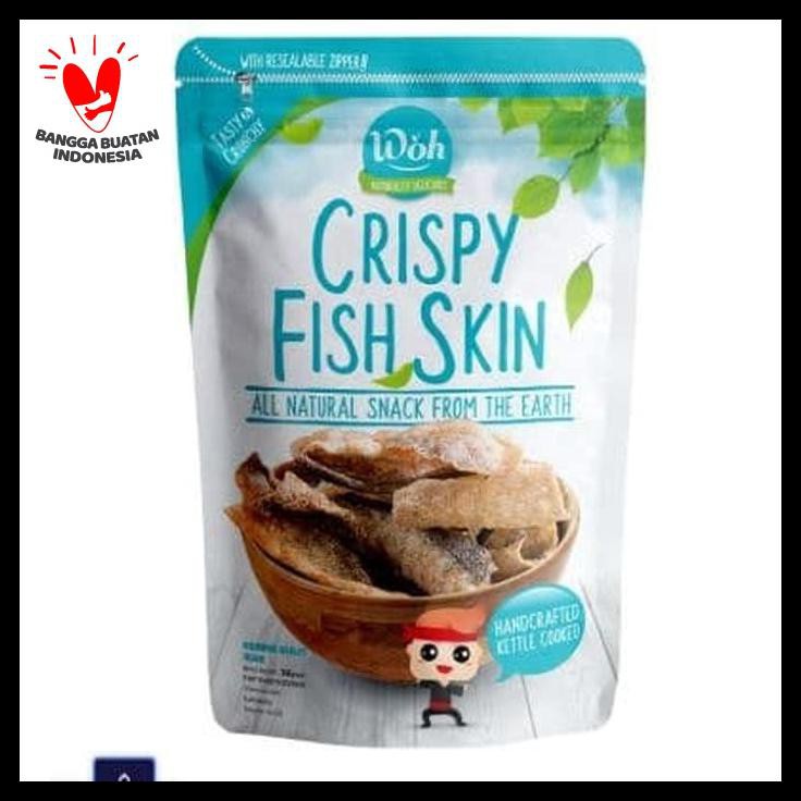 Keripik kulit ikan yang terbuat dari kulit ikan segar yang dibersihkan bagian sisik, lemak, dan daging yang menempel. Kulit ikan segar ini kemudian direndam dengan bumbu racikan spesial WOH hingga meresap, lalu di goreng sehingga menghasilkan tekstur renyah dan rasa yang gurih.