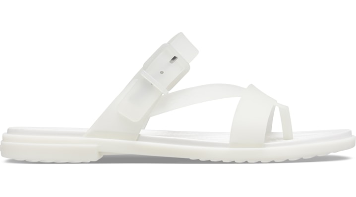 Year-Round Summery StyleFeel the warmth and joy of summer all year in the new Crocs Tulum sandal with translucent straps reminiscent of the iconic jelly sandal. The soft and flexible Matlite™ straps go on and off with ease and will keep you comfy and stylish all day. Dress it up or dress it down — whatever you choose, you’ll feel pretty, elegant and summery no matter the weather. Enjoy! Women's Crocs Tulum Translucent Toe Post Details: -Slide on and off with ease -Stylish asymmetrical straps made of soft, flexible Matlite™ material -Adjustable metal buckle -Incredibly light and easy to wear -Soft TPU toe posts -Slightly raised heel for a comfortable, trend-right silhouette -Iconic Crocs Comfort™: Lightweight. Flexible. 360-degree comfort. -Translucent upper straps