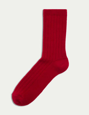 Womens Autograph Cashmere Blend Ribbed Ankle High Socks - Dark Red, Dark Red