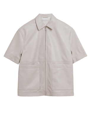 Add an edgy finish to your outfit with this leather jacket. It's cut to a regular fit and features a classic revere collar with short sleeves for a modern feel. Two practical patch pockets appear on the front. Made with responsibly sourced leather.n Autograph: premium investment pieces featuring contemporary cuts and refined finishing touches.