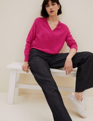 Womens Autograph Pure Cashmere V-Neck Relaxed Jumper - Raspberry, Raspberry