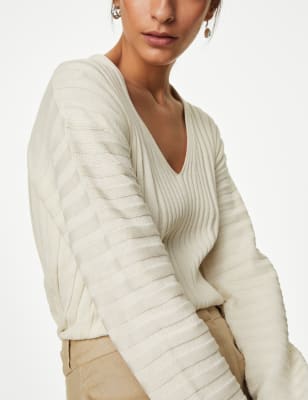 This elegant jumper from our Autograph collection is made from a silk-cotton blend for a luxuriously smooth and breathable style. It's designed in an easy regular fit and features a flattering v-neckline. For a comfy feel, the piece is finished with an all-over ribbed texture.n Autograph: premium investment pieces featuring contemporary cuts and refined finishing touches.