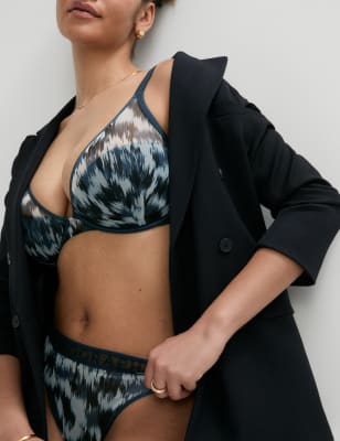 Bring a modern look to your daily essentials with this bra from Autograph. This plunge style has a wider-necked design which enhances your natural cleavage and flatters a fuller bust. Padding creates a smooth silhouette, while underwiring provides comfort and support. The cups feature a printed mesh overlay for a contemporary feel. n Autograph: refined fabrics and modern silhouettes for an effortless, understated style.
