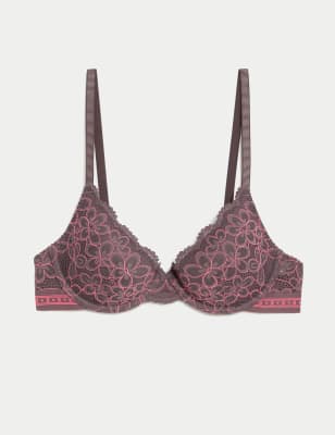 Add some zing to your lingerie collection with this bright bra from our B by Boutique collection. The demi cup design creates a flattering silhouette, with supportive underwiring and padding for a smooth, boosted shape. Feminine floral embroidery contrasts with sporty branding on the elastic underband to complement its fresh aesthetic.n B By Boutique: Playful lingerie designed for good times.