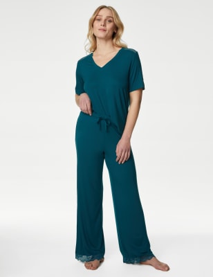 Womens Body by M&S Body Soft™ Wide Leg Pyjama Bottoms - Dark Teal, Dark Teal