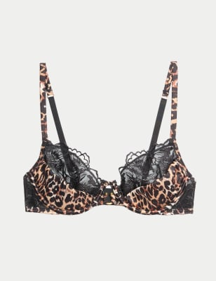 Make a striking statement in the Gala bra from our Boutique collection. This wired, quarter-cup design is lightly padded to offer flattering support and a confidence-boosting shape. Panels of floral embroidery and animal print satin contrast with sheer net to create a modern, romantic aesthetic. Metal hardware completes the look.n n Boutique: Delicate styles that deserve centre stage.