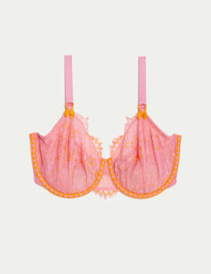 Womens Boutique Jacquelina Lace Wired Full Cup Bra - Bright Pink Mix, Bright Pink Mix