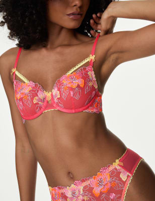Showcasing striking floral embroidery and intricate detailing, this Boutique bra will elevate your everyday lingerie. Its balcony design features a wider neckline and supportive underwired cups to create a fuller, rounded shape without any padding. Contrast strapping across the front adds a modern finish.n Boutique: flirty pieces and eye-catching designs with a sassy edge for a sense of self-assured style.