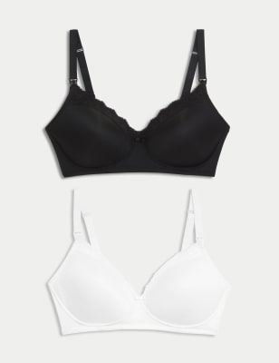 Womens M&S Collection 2pk Maternity Lace Trim Nursing Bras B-G - Black/White, Black/White