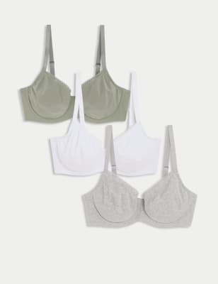 This handy three-pack of cotton-rich bras will keep your daily essentials stocked up. The underwired, full cup design provides complete comfort and support, and is non-padded for a natural silhouette. A lace trim creates a feminine finish.n M&S Collection: versatile styles in modern shapes with unique and playful details.