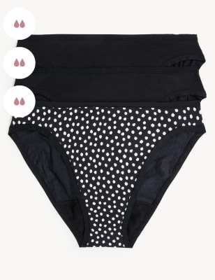 Womens M&S Collection 3pk Moderate Absorbency Period High Leg Knickers - Black Mix, Black Mix
